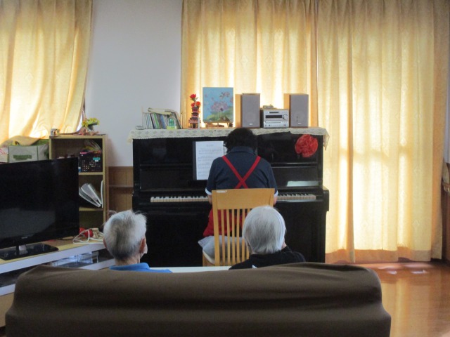 今日は午後より°˖✧◝◜✧˖°🎄クリスマス会🎄°˖✧◝◜✧˖°をひらきました🎁緊急事態宣言が解除になってから、小規模なレクリエーションは日々行っていますが、大きなイベントは今回が初めて!!皆様、フロアに集まっていただき相談員より開催の挨拶を行いました(*^-^*)まず、最初は職員による【ピアノ演奏会】です♬クリスマスにちなんだ曲「ジングルベル」「赤鼻のトナカイ」などたくさん弾いてくれました(^^♪くちずさむ方や手拍子をされる方がたくさんおられ、とっても和やかな雰囲気でした(^^♪