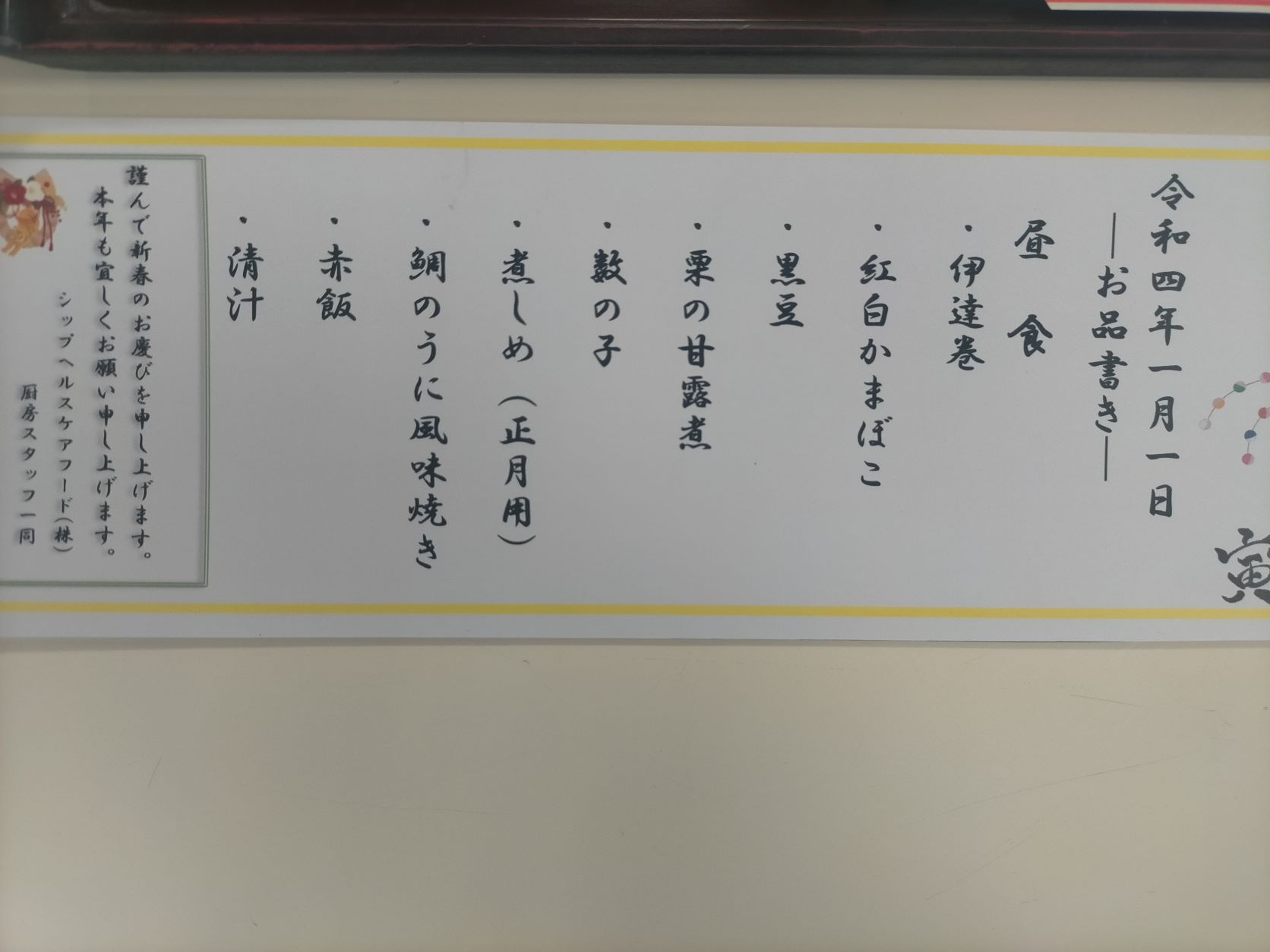 となっております。お正月らしい献立が続きます(*^-^*)