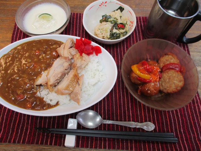 本日のお昼ご飯は、「ご当地グルメ~高知県編~」でした!! はぴねの普段のカレーは辛さ控えめのお味で提供しているためか、すだち風味のチキンカレーのお味を聞くと「今日はしっかりカレー!結構辛いよー。美味しいよー」との感想でした(#^.^#) 皆さん、美味しいと召し上がってくださり良かったです!!