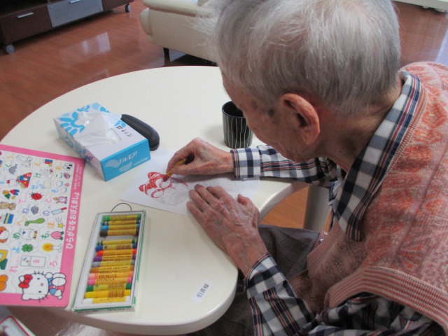 お昼ご飯の後のゆっくりとした時間に、今日は皆様で【塗り絵】をしました(^^♪「難しいな~!」と仰られていましたが、とても集中され、出来上がった塗り絵を見てスタッフも他のご利用者様もビックリΣ(・ω・ノ)ノ!とても素敵な色使いで素晴らしい作品を描かれていました(*^-^*)