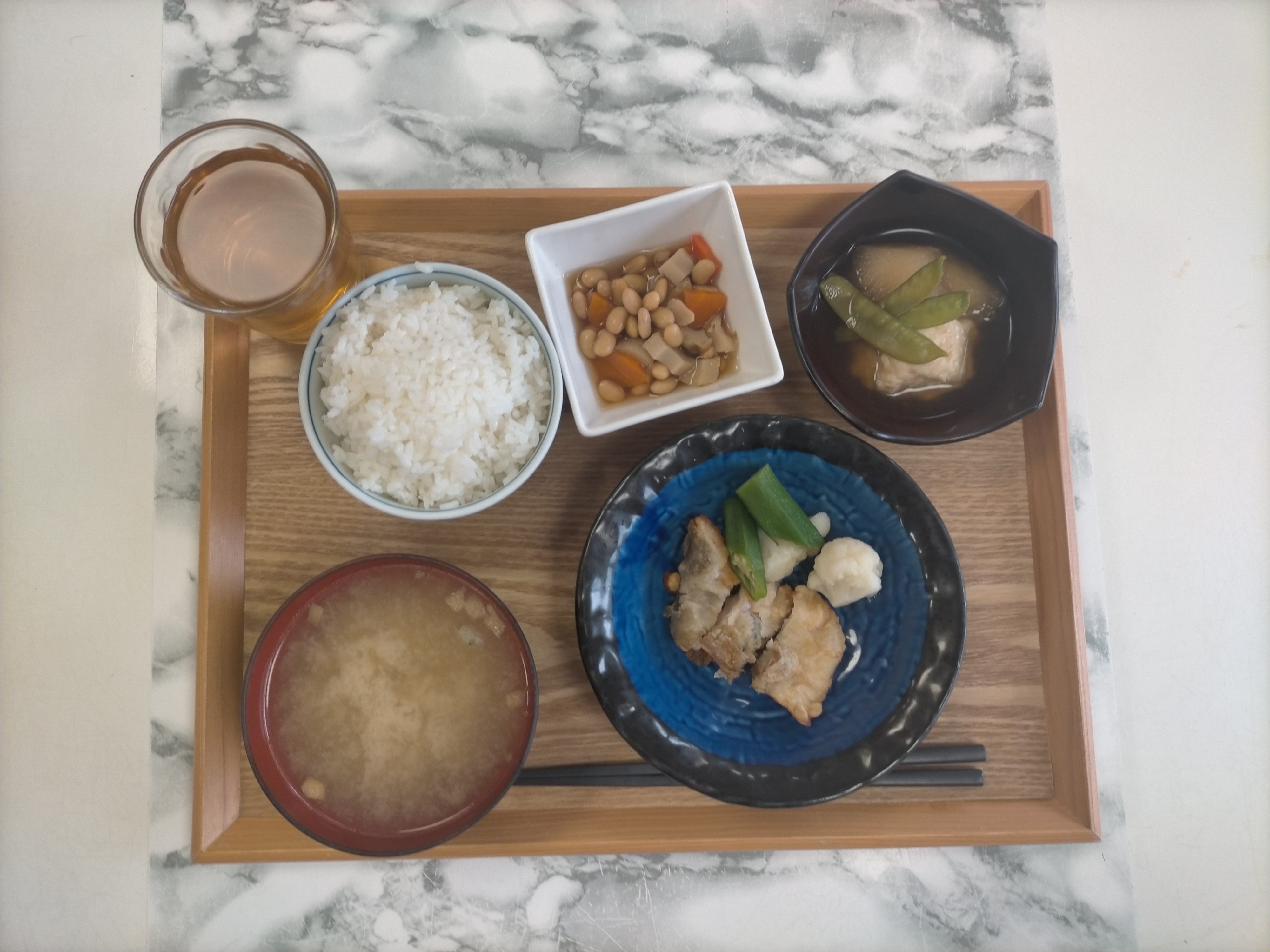 本日のお昼ご飯は白身魚の竜田揚げです。