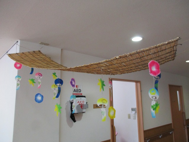 はぴね神戸魚崎内エントランスの壁面飾りをリニューアルです(^^♪夏到来!をイメージして、かわいく飾ってみました!ミニTシャツはケアマネさんのアイデア&私物です(笑)センス抜群☆各地で大雨や洪水をもたらした梅雨はもう少しで明けそうです☼すぐに暑い夏がやってきますね!皆様、水分補給をしっかり行い、素敵な夏をお過ごしください!!