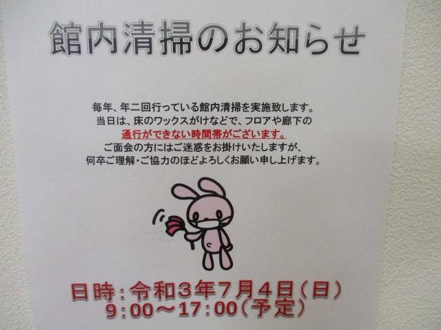 今日は年に二回の館内清掃の日でした。朝から一日中、床のワックスがけや窓の清掃などを行い、ピカピカになりました!!気持ち新たに明日からも元気に頑張ります(^^)/