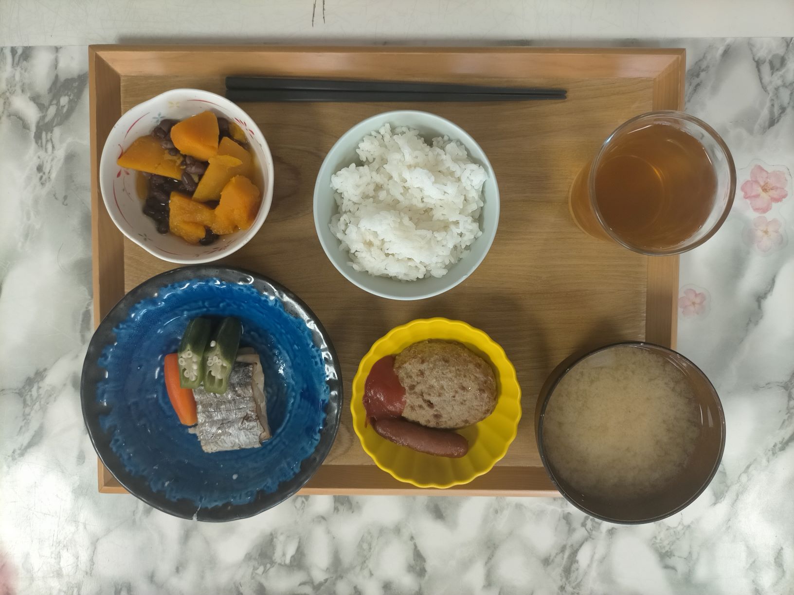 付け合わせはかぼちゃのいとこ煮で甘いのでお箸が進みます(^^♪