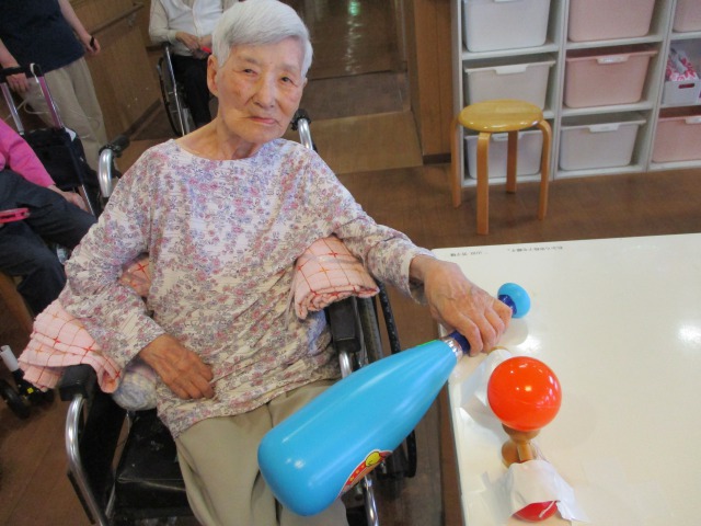 本日のレクリエーションです(^^♪最近「テーブルゴルフ」がブームのようです!テーブル上で行うパターゴルフで、真ん中にゴールがあり、ホールインワンを狙います!(^^)!皆様、狙いを定めて真剣な表情!!📷目線でナイスショット❕
