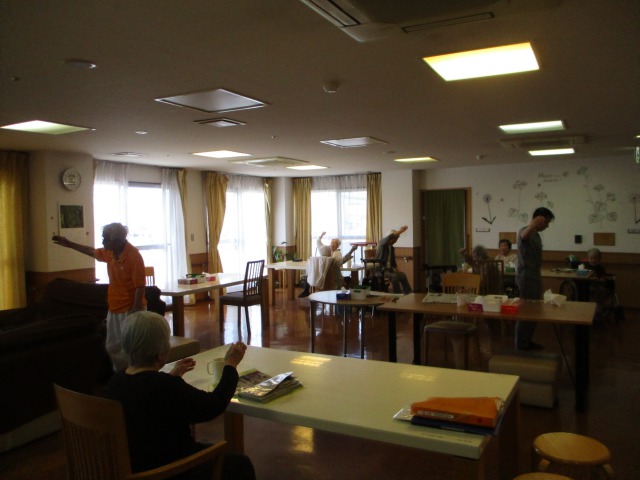 今日もいいお天気です☼毎朝10時、恒例のラジオ体操の様子です!!立って、座って、その方によって色々ですが、お顔は真剣そのもの(*’ω’*)皆様の朝のルーティーンとして欠かせません!(*^_^*)