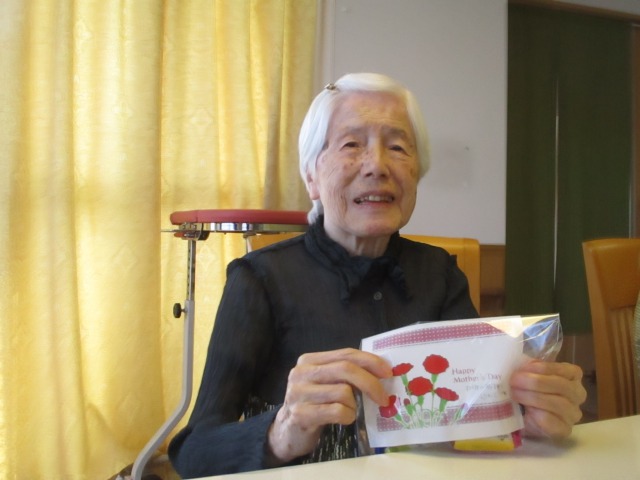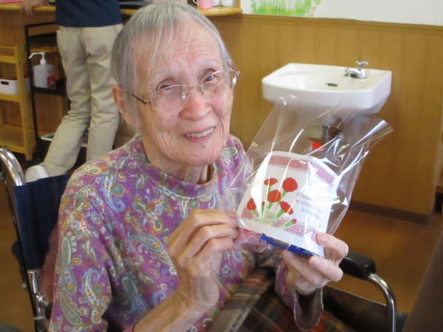 今日はあいにくの雨ですね^^;本日はお散歩に行けませんので、母の日のご様子をお伝え致します!母の日のプレゼントをお渡した時のご様子です(^^)皆様、とても素敵な表情をされていますね(#^.^#)