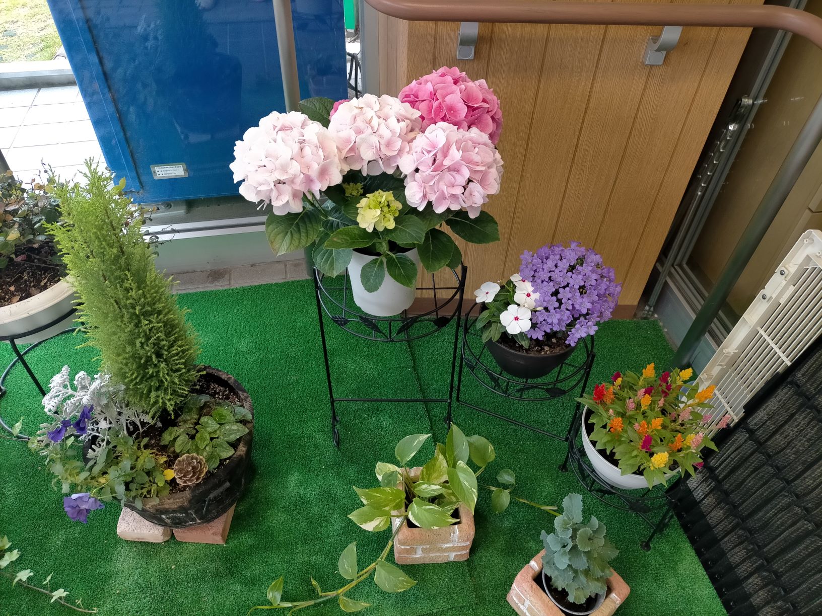 玄関の壁面飾りをイメージチェンジしました(^^)紫陽花のお花は眺めていると、なぜだか心が落ち着きますね❀【母の日】の明日はどんな楽しい事が待っているでしょうね~(#^.^#)