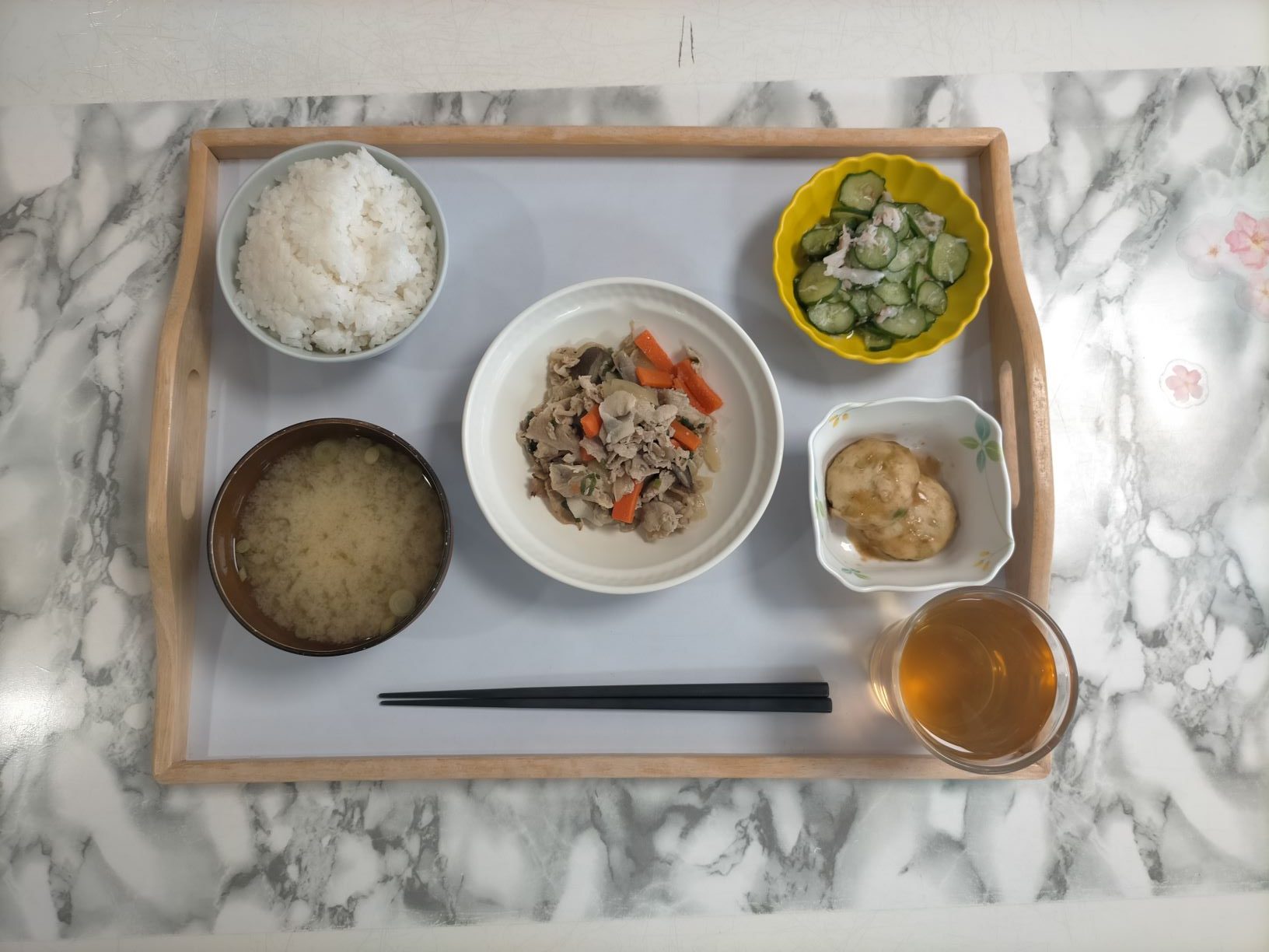 本日の昼食は豚肉のバター醤油炒めです。