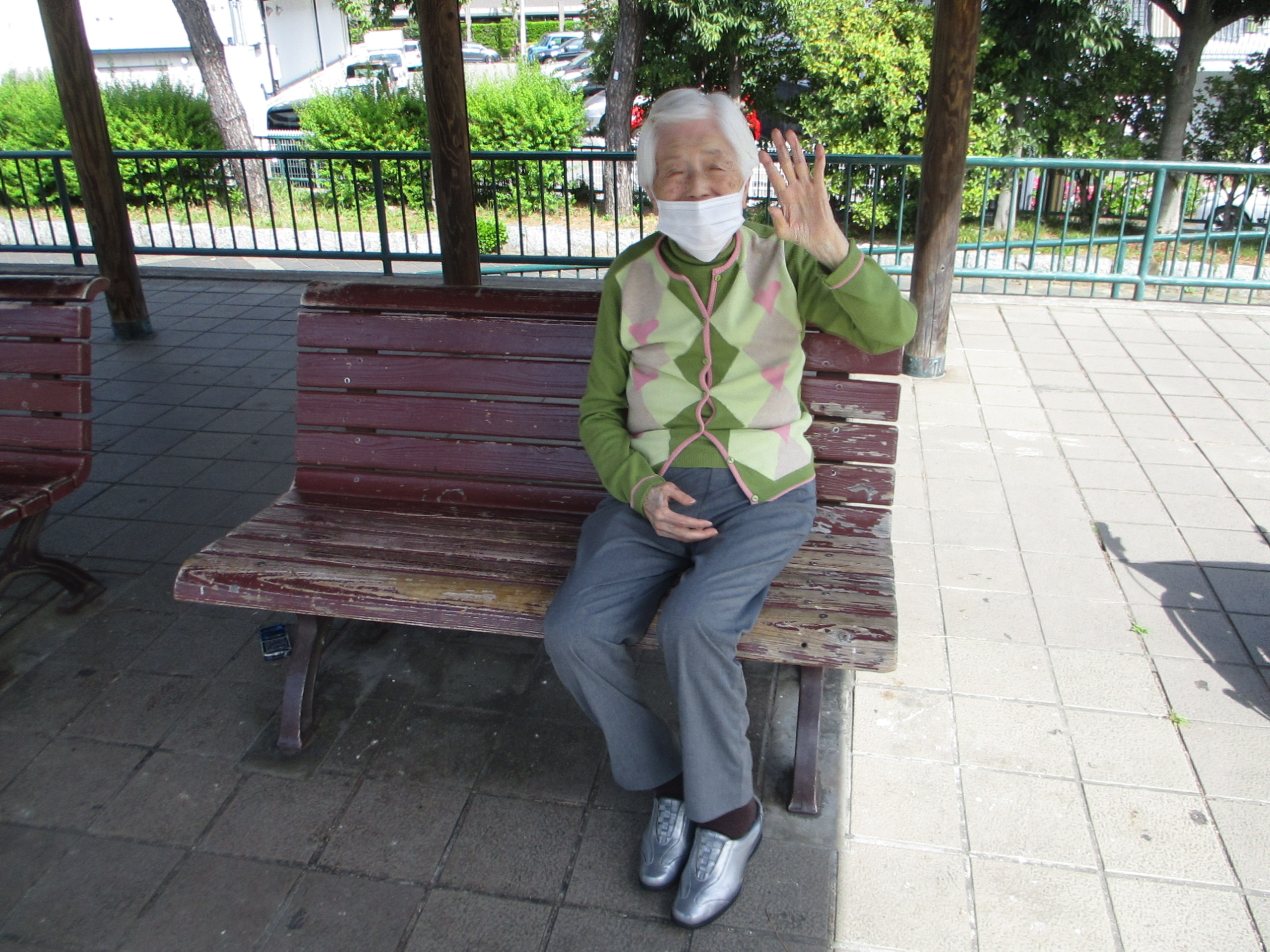 今日もとってもいい天気(^^) おやつ前に少しお散歩に行きました!花の名前を聞くと即答で答えてくださり、「枯れたやつはとらなあかんのよー」と慣れた手つきでお手入れまでして下さいました。やっぱりさすがですね(^^)