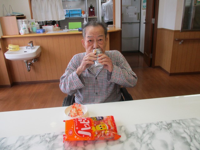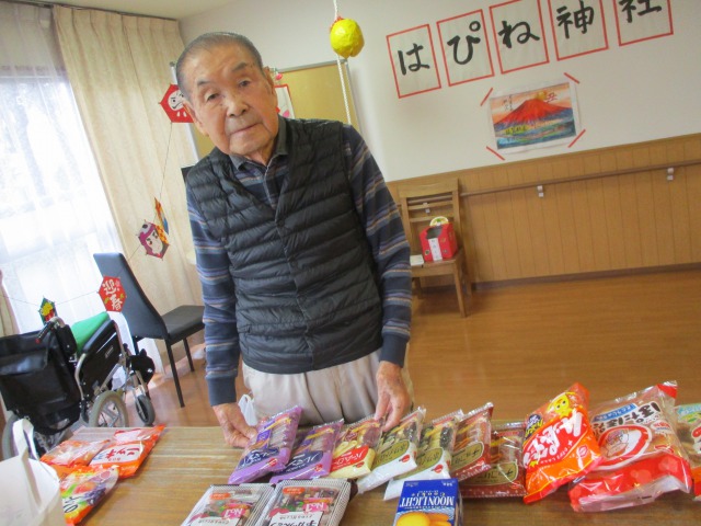 冬の中休みでしょうか?ぽかぽか陽気の今日は、スタッフ主催の***おやつ販売***を行いました(#^.^#)談話室に並べられたおやつの中から、好きなお菓子や飲み物を選んでいただきました!今は、自由にお買物に行けない状況ですので出来るだけこのような機会を設け、不自由のない生活をして頂きたいと思っております。