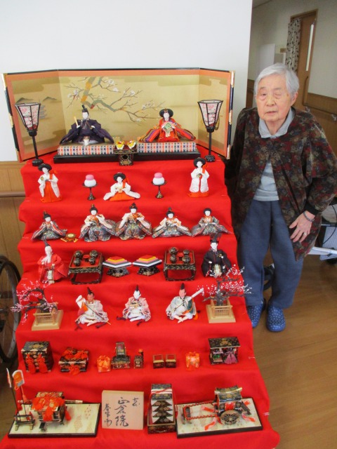 お雛様を眺めつつ、甘酒とおやつをいただきました。