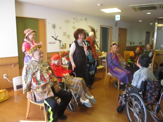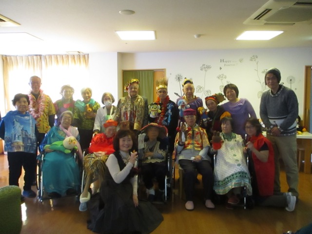 全員参加型のイベントで、ご入居者様もスタッフも世界各国の民族衣装を着て、