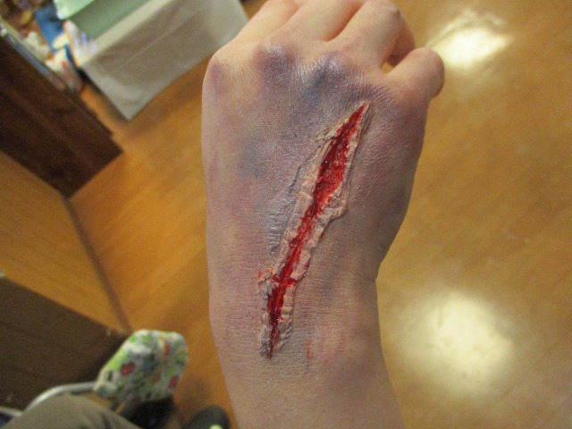 ①の特殊メイクは最近ハロウィンなどで流行っているメイクの実演でした!