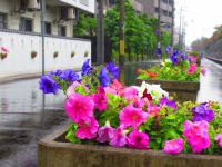 「すごい雨だね~。」とご入居者と外を眺めていたら、水をいっぱい浴びていつもより生き生きと咲いている花たちに目が留まりました。鉢植えしてかれこれ2カ月経ちますが、いつも元気いっぱいのはぴねの花壇に皆が癒されています。
