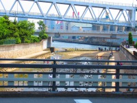 そんな中、やなぎ整形外科クリニックの野柳先生が往診に来てくださり、臨時のお薬を出してくださることに。せっかくなので、自転車ではぴね→やなぎ整形外科→阪神調剤薬局→ロイヤルホームセンターと回っていると、住吉川には大勢の親子連れが川遊びをしていました。