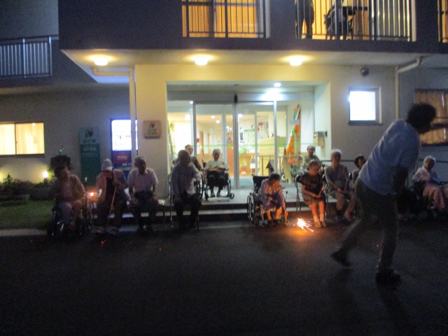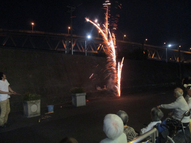 手持ち花火・線香花火・ねずみ花火等で楽しんだ後、