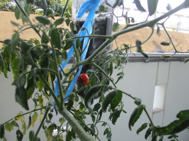 はぴね神戸魚崎のベランダではミニトマトがぐんぐん育っています‼写真をご覧ください📷なんと【空中栽培】という方法で育てています(*’▽’)