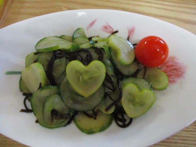 屋上菜園では、ハート型のきゅうりが収穫できました(*^-^*)お漬物にして、夕食にご利用者様の元へお届け❤ハート型のきゅうりの秘密を看護師さんに教えてもらってビックリ(@ ̄□ ̄@;)!!専用の型にはめて育てるのだそうです!今は星形に挑戦しているとのこと☝見た目かわいく、味もおいしい❤皆様、完食されておりました(*^▽^*)
