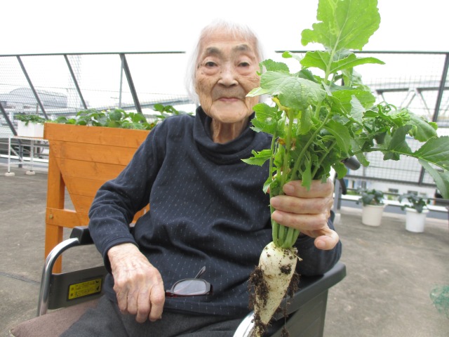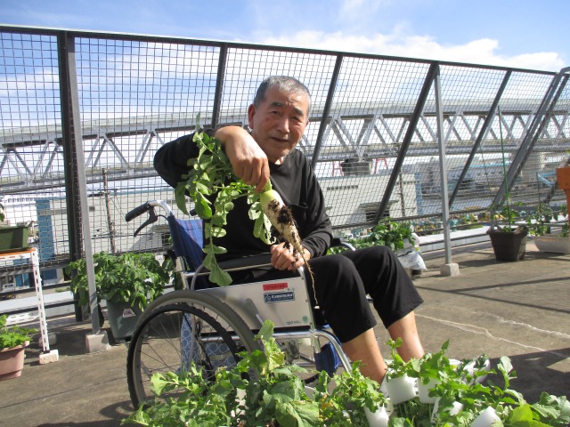 今日は快晴!!屋上菜園で大根を収穫しましたーー!!