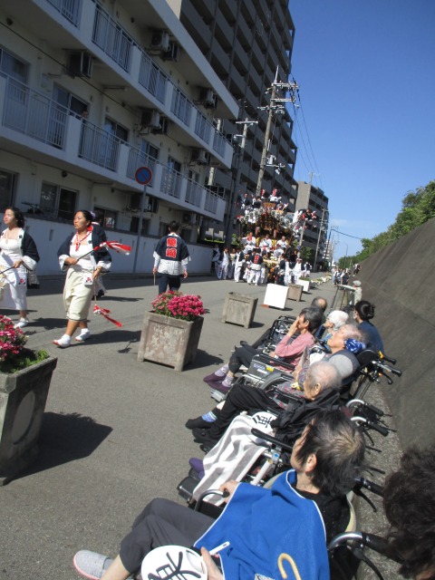 5月5日14時50分、はぴね前に今年も来てくださいました(*^-^*)ご利用者様皆様、うちわを持ってスタンバイOK!!迫力のあるだんじりを間近に皆様目が離せないご様子でした🌟今年も見れてよかった~!!といつまでも興奮冷めやらぬ午後のひとときでした(*^^)v