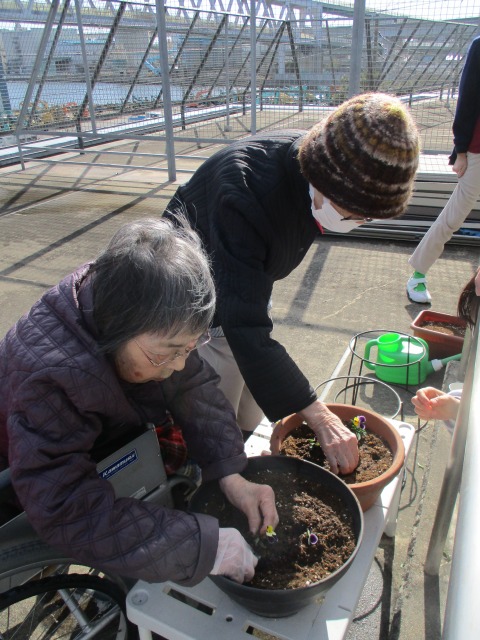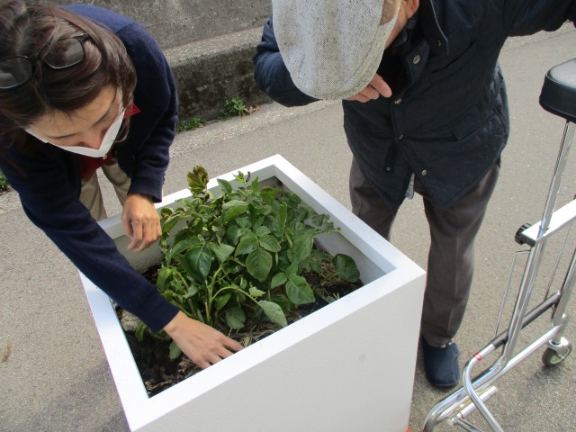 【屋上菜園】では毎日、日課の水やりと観察を皆様と一緒に行っています(*^-^*)何やら今日は新しい動きが・・・小さい種芋を植えられているようです🔍あとはお花の苗の植え付けをされていました🌱ラディッシュは早くも小さい芽が出てきています!!毎日新しい発見があって皆様生き生きとされています(^^♪