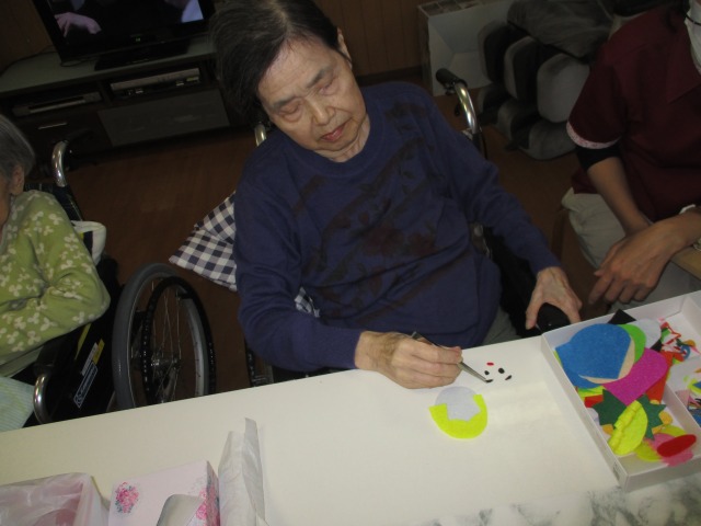 お昼くらいから、空が暗くなり雨がぽつぽつ降ってきました☔今日もご利用者様と節分のマスコットを作りました(^^♪少し手が動かしにくい方もいらっしゃいますが、頑張って一生懸命作ってくださいました‼なんだか作った人に顔が似てくるみたい~(⋈◍>◡<◍)。✧♡と話題になりました(*^-^*)