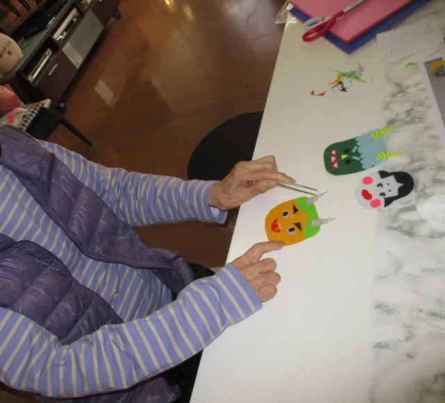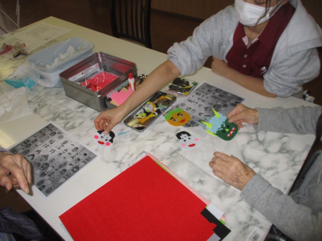 【節分】が近づいてきました👹去年は段ボールに鬼の顔を作って貼り付け、皆様で玉入れをしましたが今年は…かわいい手作りの鬼やおたふくのマスコットを作ります✂今日はその第1回目‼色も目も眉毛も自分で作るので同じものはふたつとありません☝それぞれ違う顔になって愛着が沸いてきて、ご利用者様はずっとかわいい❤と眺めておられました(⋈◍>◡<◍)。✧♡