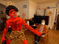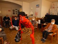昨日、機能訓練体操の一環で、節分の豆まきをしました。