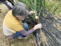 去年の秋に植えた玉ねぎも大きくなって収穫時期をむかえました。