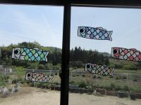 デイサービスのフロアもお庭もこいのぼりで飾られています。