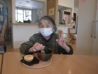 どら焼きを皆様と作り、お抹茶をたてて、いただきました。いい香りが、画面から伝わっちょるでしょう💕