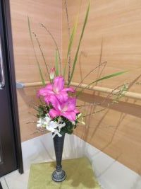 今日の昼食は庭のお花を見ながら「お花見弁当」を頂きました。