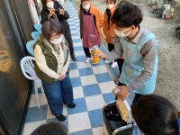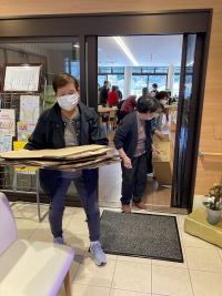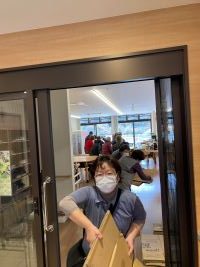 一列になって、入居者様、スタッフさんで運んでいる様子をパチリと撮りました。
