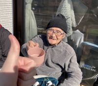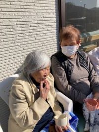 先日はとても暖かい日がありましたので、外気浴にでました。皆様、「こんなぬくいのは、久しぶりだね」と嬉しそうにされました。温かい飲み物をお出しすると「最高じゃ」と身も心も温まったご様子でした。
