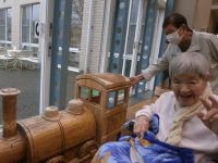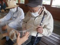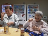 大きな木彫りの作品もあり、入居者様も食い入るように見ておられました。そのあとは休憩所にてお茶タイム☕