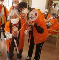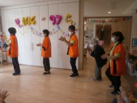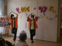 職員による余興、案山子のダンスや書道ガールズによるパフォーマンス、皆さんで炭坑節を踊り楽しい誕生日会になりました👏