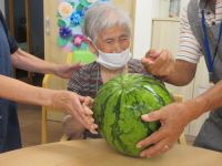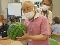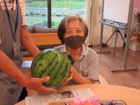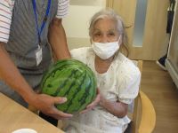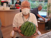 ご近所の方が育てた、立派なスイカをいただきました。