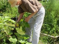 畑に、植えてある苗に実が付きました。
