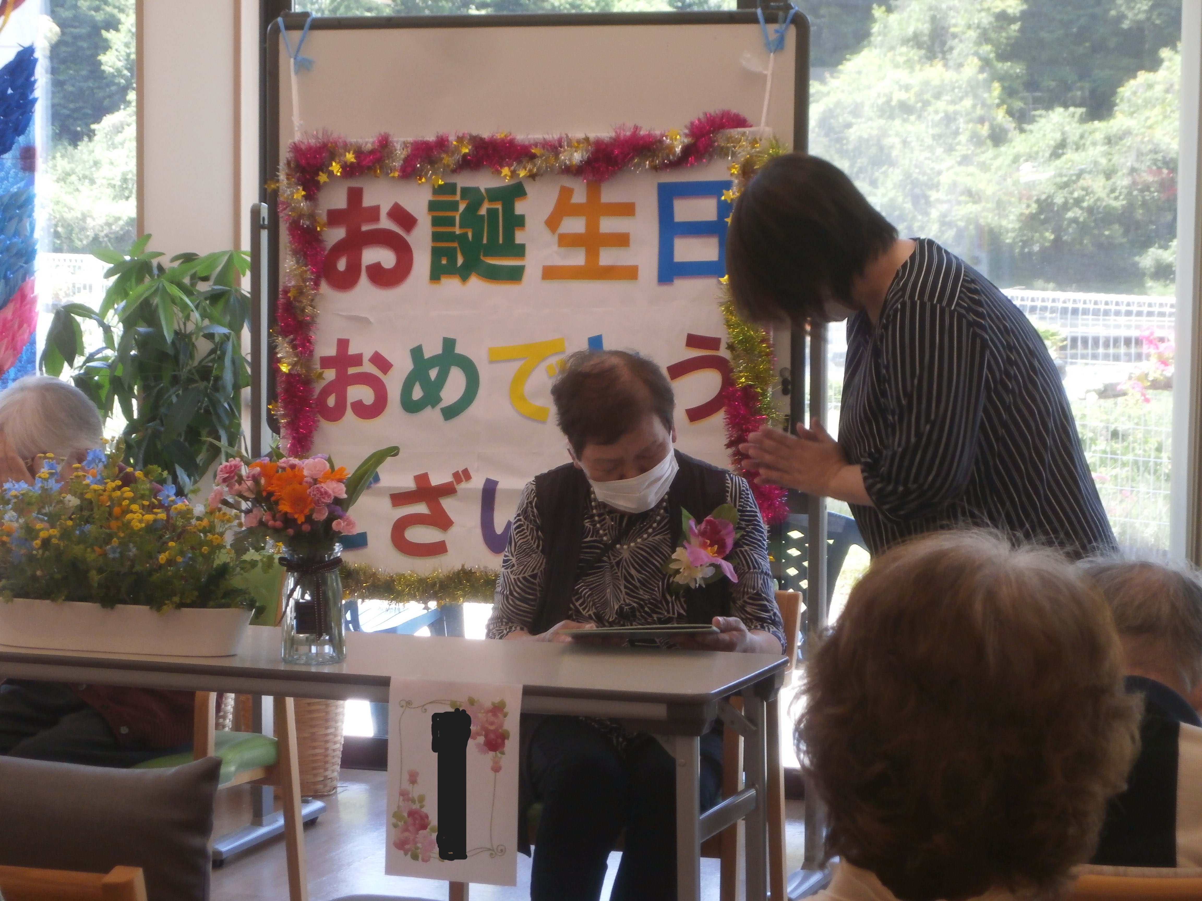 デイサービスとグループホームの合同誕生会、先月より再開されましたが、今月も皆様楽しそうに参加されました。
