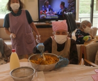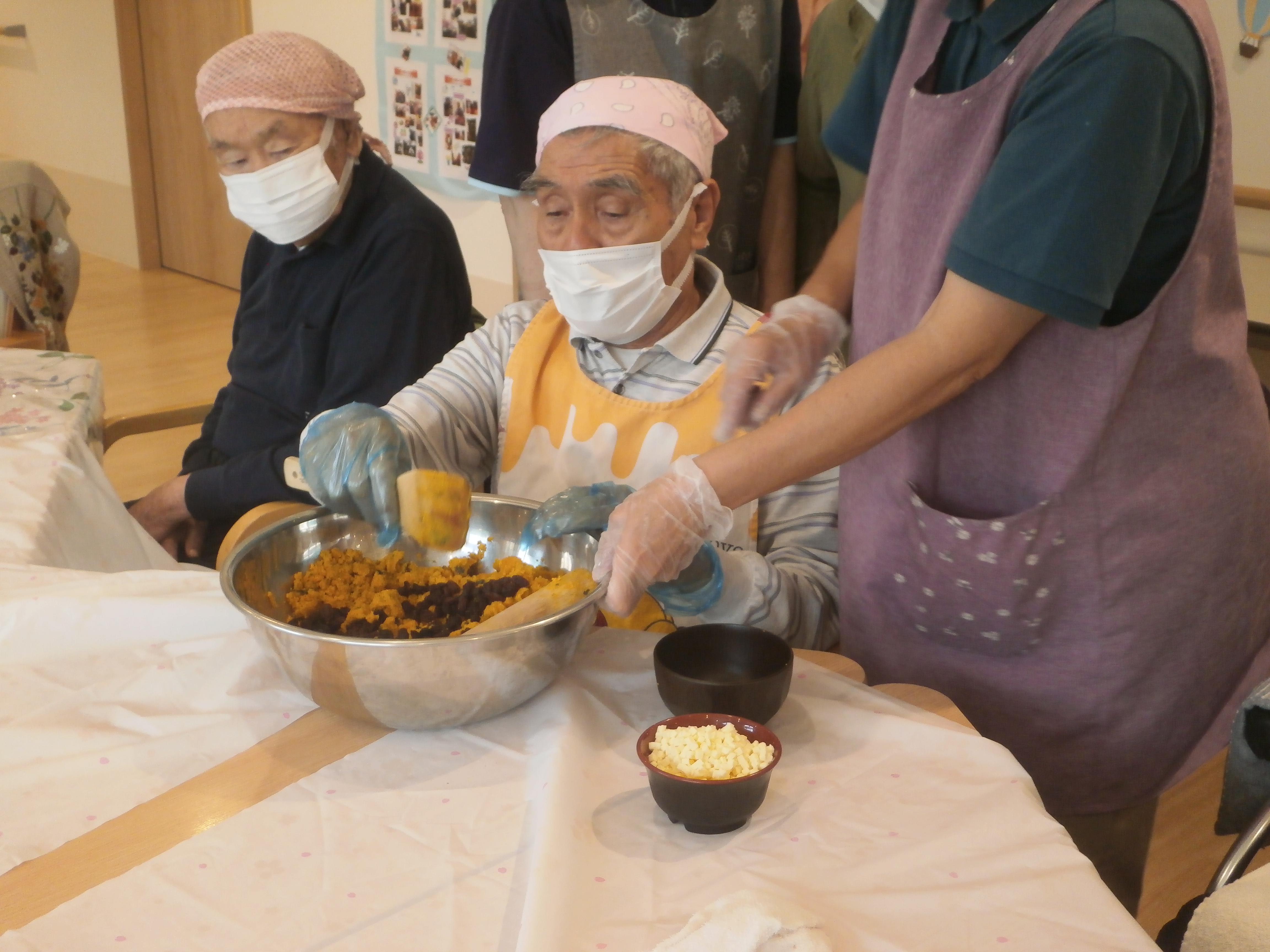 野菜を切られたり皮を剥かれたり、かぼちゃを潰されたり皆さんとても慣れた手つきでした(^^♪