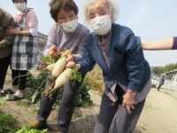 秋に種まきした大根と苗から植えた白菜の収穫を行いました。