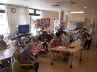 皆さんや職員から誕生日のお言葉、ハッピーバースデーの歌やお好きな歌「木綿のハンカチーフ」を皆で歌いました♪