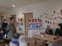 入居者の皆様や職員からのお祝いのお言葉や、お好きな「二輪草」の歌を皆で唄い、良い誕生日会になりました(*^^*)