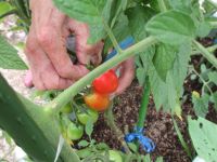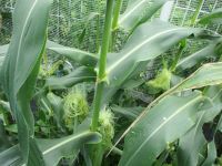 畑には旬のキュウリや、トマト。今から収穫のトウモロコシなどたくさんの野菜が