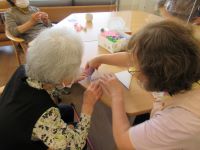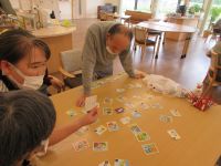 グループに分かれて、裁縫・ランプシェード作り・歌カルタ・折り紙など様々な活動です。