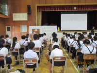 対象は6年生131名。小さいときから認知症について学ぶことで、優しい街、誰もが住みよい街になればと思い、毎年参加させていただいています。子ども達も真剣な表情で聞いたり、時には笑いもありの90分となりました。「誰もが住みやすい街を作るには?」という学習の一環で行われましたが、今年も参加させて頂きありがとうございました。