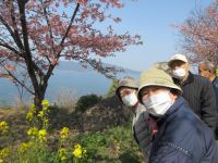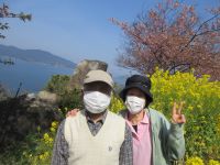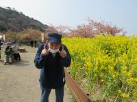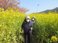菜の花の黄色と河津桜のピンクが海の青さにきれいに映えてとてもきれいでした。