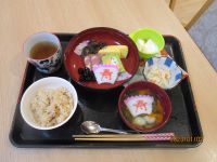 紅白かまぼこやたまごやき、栗きんとんや黒豆や赤飯などお正月らしいメニューとなりました。