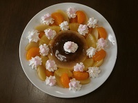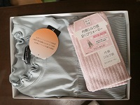 スタッフからのプリンと色紙、ご家族様からのお菓子とお洋服の